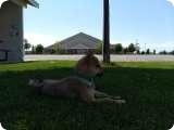 Hello, Danielle and Kevin. Just wanted to send you a couple pictures and an update on Lucy. It took us a week to decide what we wanted to name her. We would have left it Lucy, but I have an Aunt Lucy. Every name we considered, just didn't fit her personality. Finally we decided on Ginger - it fit perfectly. On our 5 hour trip home, she laid in my lap the whole time. We stopped once for a potty & water break - she just sat down and did nothing - the harness and leash scared her I think. ...