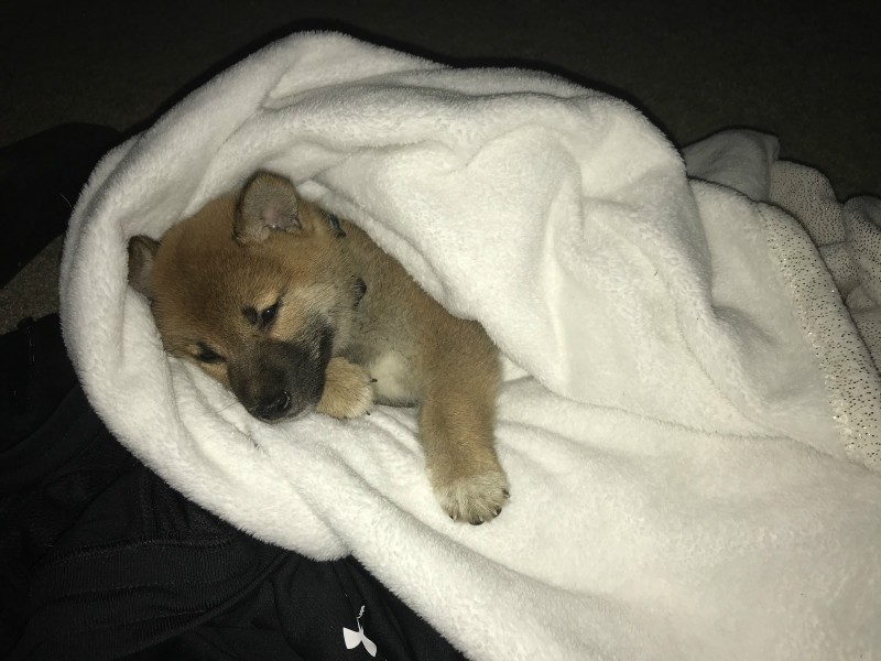 Jesse is the second dog we have gotten from Danielle. Our first shiba, CJ, is two years old, and our new one, Jesse, is only 12 weeks. In the short time we have had him we have already fallen completely in love and so has CJ! They play so well together and Jesse is so sweet. They’re the best of friends. We are so glad that both of our shibas are so friendly with such a great temperament. We are so happy with our little shiba family!